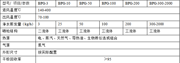 閉路循環(huán)噴霧干燥機技術規(guī)格