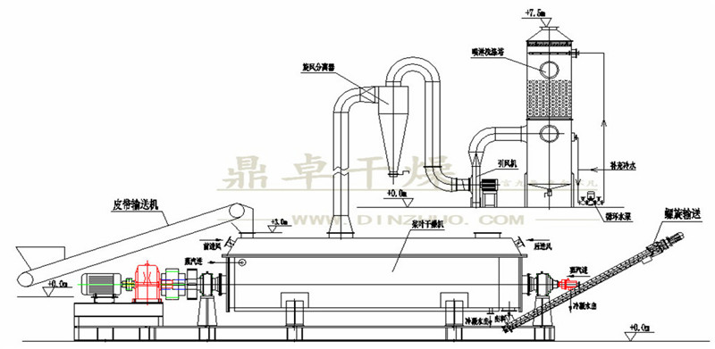 ◎漿葉干燥機系統(tǒng)造價低: 單位有效容積內(nèi)擁有巨大的傳熱面,就縮短了處理時間,設(shè)備尺寸變小。就極大地減少了建筑面積及建筑空間。