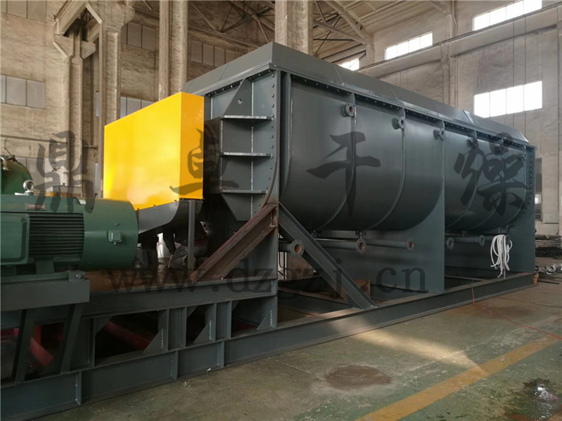 空心軸上密集排列著楔型中空漿葉,熱介質(zhì)經(jīng)空心軸流經(jīng)漿葉。單位有效容積內(nèi)傳熱面積很大,熱介質(zhì)溫度從-40℃到320℃,可以是水蒸汽,也可以是液體型:如熱水、導(dǎo)熱油等。間接傳導(dǎo)加熱,沒有攜帶空氣帶走熱量,熱量均用來加熱物料。熱量損失僅為通過器體保溫層向環(huán)境的散熱。楔型漿葉傳熱面具有自清潔功能。物料顆粒與楔型面的相對運動產(chǎn)生洗刷作用,能夠洗刷掉楔型面上附著物料,使運轉(zhuǎn)中一直保持著清潔的傳熱面。漿葉干燥機的殼體為Ω型,殼體內(nèi)一般安排二到四根空心攪拌軸。殼體有密封端蓋與上蓋,防止物料粉塵外泄而充分發(fā)揮作用。