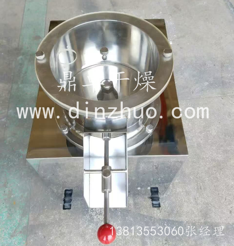 在旋轉(zhuǎn)盤的上部安裝有可視觀察窗,物料在密閉容器內(nèi)操作,無粉塵飛揚(yáng),操作安全。出料可采用手動(dòng)或氣動(dòng)出料,方便,快捷