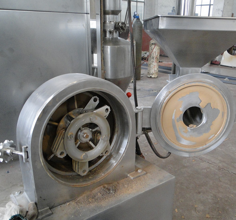 該機組適用于制藥、食品、化工等行業(yè)。具有風冷、無篩網(wǎng)等多種功能,本機不受物料粘度、軟硬度及纖維等限制。對任何物料都能起到較好的粉碎效果。特別適用于粉碎帶纖維的中藥材、帶一定油性的物料。